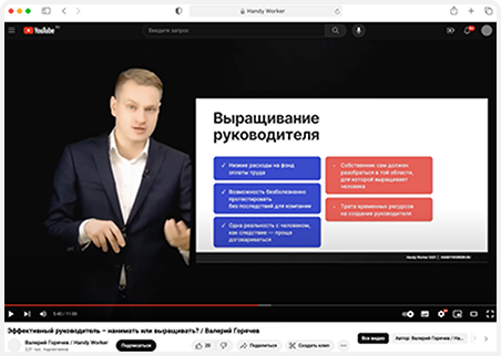 Видео, в котором разбираем, что выгоднее для бизнеса: нанимать готового руководителя или выращивать его внутри компании.