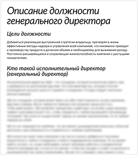 Регламент, описывающий ключевые обязанности и зоны ответственности генерального директора компании