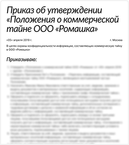 Приказ о введении режима коммерческой тайны и правила его соблюдения