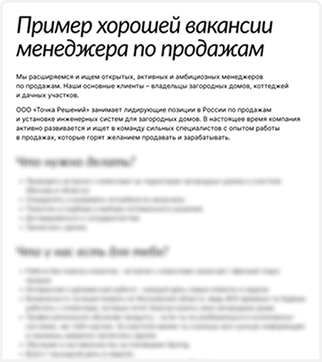 Пример вакансии с описанием обязанностей и требований к кандидату на должность менеджера по продажам