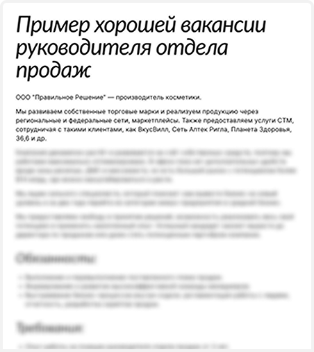 Пример вакансии с описанием обязанностей и требований к кандидату на должность руководителя отдела продаж