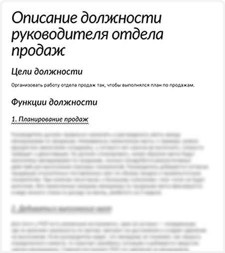 Описание должностных обязанностей и требований к руководителю отдела продаж