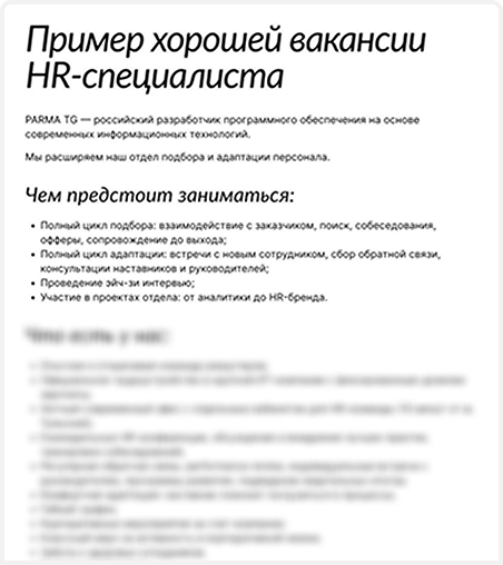 Пример вакансии с описанием обязанностей и требований к кандидату на должность HR-специалиста