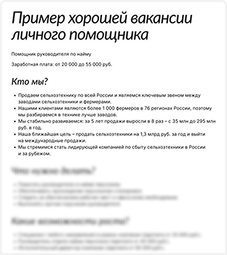 Пример вакансии с описанием обязанностей и требований к кандидату на должность личного помощника