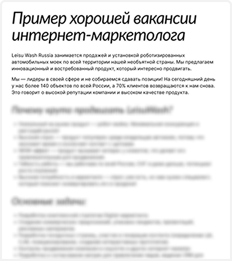 Пример вакансии с описанием обязанностей и требований к кандидату на должность интернет-маркетолога